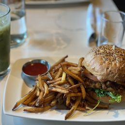 This place is amazing. The amount of passion and pride that you see going in to every aspect of this dining experience is 10/10. From the detail in the decor, to the curated mocktails and the well thought out menu. I had the Black seed burger and it did not disappoint. Even the ketchup served with the fries was unique and delicious. The desert was epic. I forget the name, but it was a cake that blew my mind. Texture and taste were perfect. I'm not usually a cake guy so my expectations were far exceeded! Tip: don't forget to check out the coffee shop Dark Hall Nextdoor if you're dining too! They really know how to pull a shot properly! Same owners and same passionate approach. Don't sleep on this one!