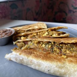 I came here with my family for my birthday, and we had the best brunch! I'm the only vegan in the family, and even my meat-eater parents and siblings thought the food was fantastic. I made a reservation for our group of 5 in advance, so we were seated at a nice corner booth. The place was busy but not full when we came in at 11am on a Sunday. Immediately we were greeted at our table by Juan, who introduced himself as the owner. He was extremely friendly and gave us a brief history of the place, and welcomed us to go next door to Dark Hall Coffee to grab coffee if we wanted and bring it back inside. My dad went next door for a latte, and also picked up a mini birthday cake for me as well! For food I had the brunch special for that day, which was an absolutely DELICIOUS loaded toast. The menu isn't huge, but everything is made from scratch and done exceptionally well. I will definitely be back again to work through the rest of the menu. After our meal our server brought us some plates and a knife for our cake, which was lovely. With the check they also bring you a little notebook that patrons write in, which I thought was really cute. All in all the food was absolutely incredible and everyone we interacted with was wonderful, highly highly recommend!